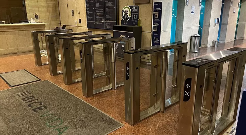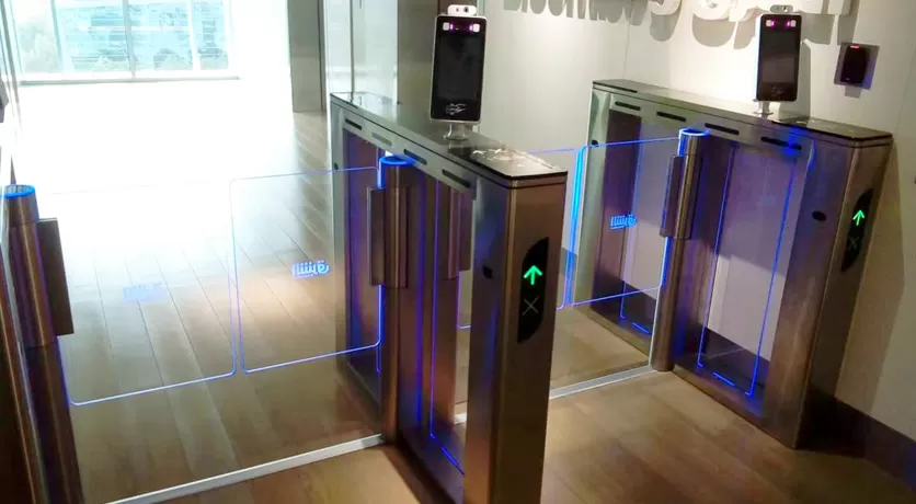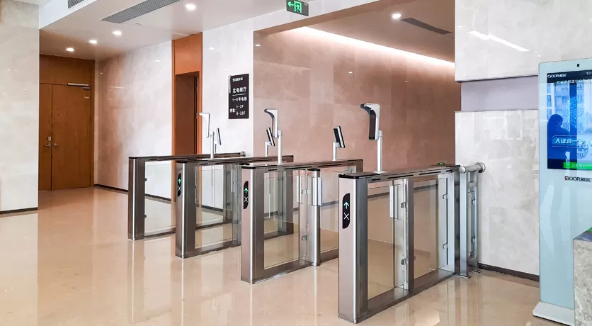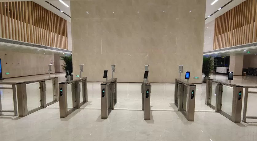 The DR.TD.6621L Speed Gate combines a SUS304 stainless steel cabinet, transparent swing panels, and AI-driven servo motors for adaptable passage widths. Features multi-optical sensors and anti-tailgating tech for contactless, high-traffic security.Key Elements Preserved :
