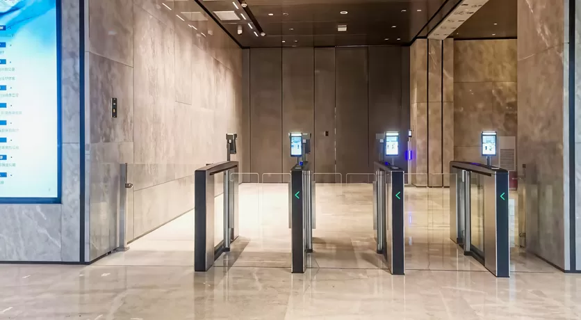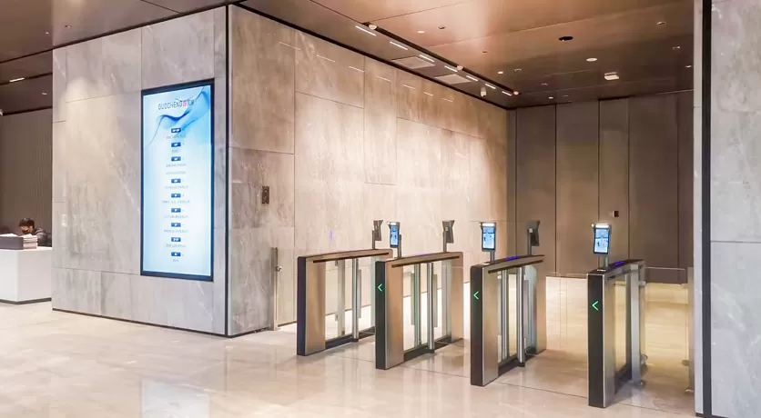 Lighting Guidance: red and green LED light signal passing guidance, direct and concise; the floating light design at base forming an ambient guidance effect with modern aesthetics.
